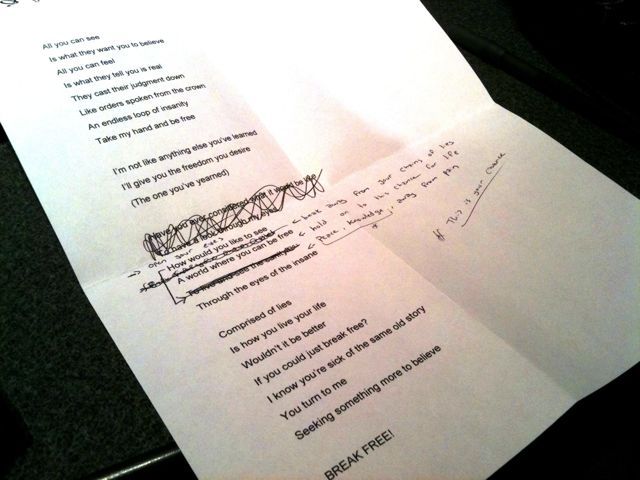 Scratching and modifying lyrics as I listen to the instrumental draft.